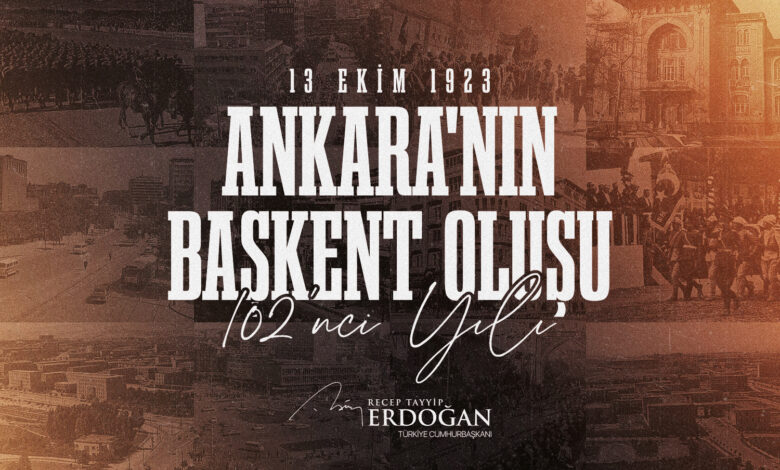 Cumhurbaşkanı Recep Tayyip Erdoğan, Ankara’nın başkent ilan edilişinin 102’nci yıl dönümü dolayısıyla bir kutlama mesajı yayımladı.