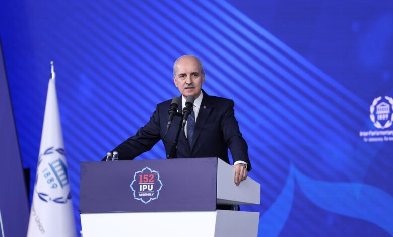 Türkiye Büyük Millet Meclisi (TBMM) Başkanı Numan Kurtulmuş, TBMM’nin ev sahipliğinde gerçekleştirilen Parlamentolar Arası Birlik (PAB) 152’nci Genel Kurulu’nun kapanış oturumuna katıldı. 15-19 Nisan tarihleri arasında düzenlenen ve yaklaşık 80 meclis başkanı ile 800 milletvekilini bir araya getiren genel kurulda, küresel krizler ve çözüm yolları masaya yatırıldı.